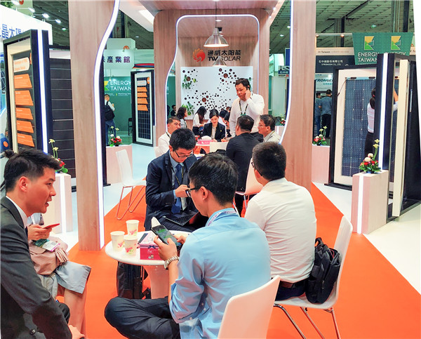 臺灣展會現場通威太陽能展臺眾多客戶交流