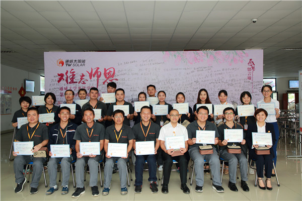 又一個收獲的季節碩果飄香,又一個期待的九月祝福飛揚。在這秋韻蕩漾的日子里,通威太陽能全體同仁共同迎來了全國第34個教師節。值此之際,通威大學光伏學院特開展以“感念師恩”為主題的內訓師教師節活動。通威太陽能合肥基地總經理謝泰宏、成都基地總經理蕭圣義分別出席兩地活動,為內訓師送上祝福。