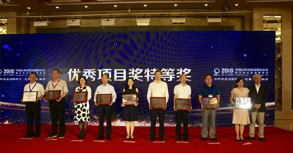 2018年8月8-10日,由中國(guó)能源研究會(huì)分布式能源專業(yè)委員會(huì)、中國(guó)能源網(wǎng)研究中心主辦,中國(guó)能源網(wǎng)承辦的2018(第十四屆)中國(guó)分布式能源國(guó)際論壇在武漢召開。通威集團(tuán)禚玉嬌總裁榮獲“2018年度中國(guó)分布式能源杰出貢獻(xiàn)人物獎(jiǎng)”,通威廣西欽州康熙嶺“漁光一體”項(xiàng)目因良好的經(jīng)濟(jì)、社會(huì)和環(huán)保效益,榮獲“2018年度中國(guó)分布式能源優(yōu)秀項(xiàng)目特別獎(jiǎng)”。通威惠金新能源副總經(jīng)理邵國(guó)軍代表領(lǐng)獎(jiǎng)。此次獲獎(jiǎng),充分展現(xiàn)了通威“漁光一體”的行業(yè)影響力,體現(xiàn)了業(yè)界對(duì)通威在光伏電站規(guī)劃、建設(shè)及運(yùn)營(yíng)方面的高度認(rèn)可。
