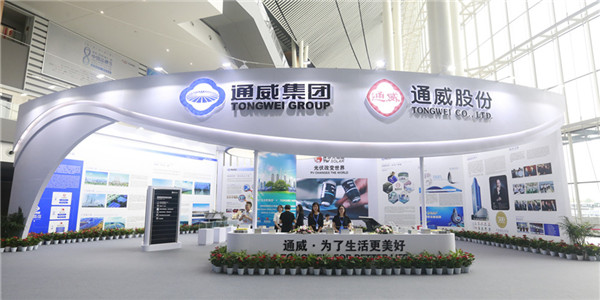 開幕式期間,通威集團副總裁胡榮柱受邀出席《定力與奮進:中國制造與中國品牌》為主題的高峰對話,通威股份光伏事業(yè)部總裁陳星宇作《通威“漁光一體”助推綠色發(fā)展》主題演講。