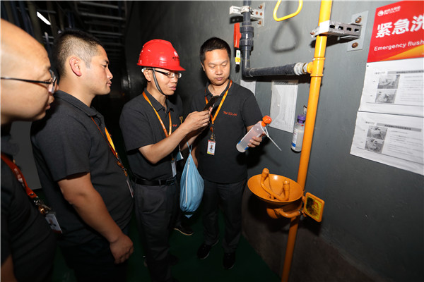 由兩地各部門組成的檢查組,先后深入兩地各生產車間、物料存放區、特氣房、新項目施工現場等重點區域,對化學品安全、特氣安全、安全防護設施等各方面進行全面檢查,細致查看各區域安全檢查記錄,認真排查各類安全生產隱患,確保假日期間兩地安全、高效生產。