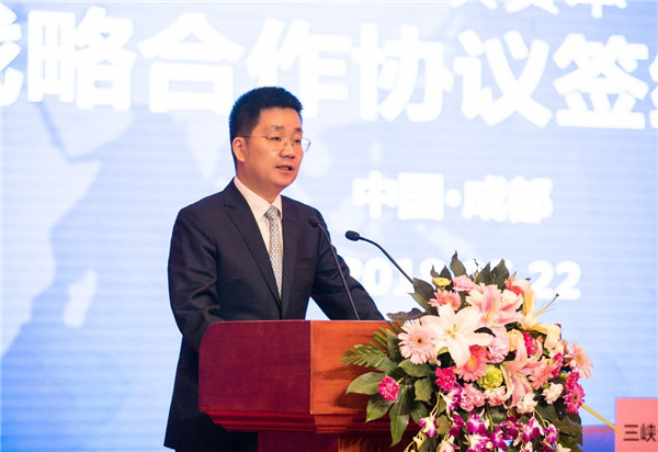 謝毅董事長致歡迎辭,謝董表示,這次的合作因時而謀,順勢而為,相信在新一輪全球光伏產業變革的浪潮下,三方的強強聯合,將力爭使項目成為成都又一“獨角獸企業”,并為光伏行業發展的歷史鐫刻下清晰的“成都坐標”,為雙流區打造千億級新能源產業生態圈提供堅實支撐,為成都新經濟發展注入強勁動力。