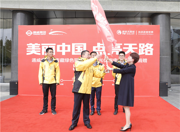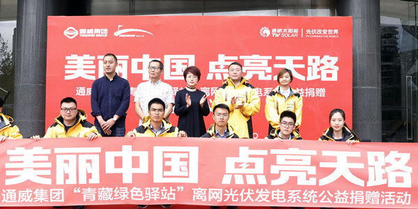 在迎風揮舞的旗幟下,“青藏綠色驛站”捐贈項目的通威志愿者們氣勢昂揚、整裝待發(fā)!我們相信,通過本次捐贈活動,通威集團必將為青藏線的生態(tài)環(huán)境保護工作不斷貢獻力量。我們也相信,通過通威集團及所有光伏行業(yè)同仁的共同努力,必將為中國的綠色發(fā)展持續(xù)貢獻力量,為我們的子孫后代留住青山綠水、白云藍天!