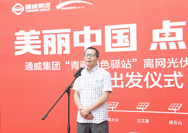 當天儀式上,李大放秘書長代表綠色江河組織發(fā)言。李秘書長對通威集團向綠色江河公益捐贈的三套離網(wǎng)光伏發(fā)電系統(tǒng)表示衷心感謝,并表示,20年來,綠色江河堅持從事江河上游地區(qū)的綠色環(huán)境保護,先后建立索南達杰自然保護站、長江源水生態(tài)環(huán)境保護站,并從2016年起,協(xié)同青海政府建立“青藏綠色驛站”,進一步推動青藏公路沿線的環(huán)境保護工作。本次,通威為綠色江河捐贈的三套離網(wǎng)光伏發(fā)電系統(tǒng)將有效解決“青藏綠色驛站”正常運行的瓶頸問題,為環(huán)保工作帶來了一場“及時雨”,使驛站能夠更好地為青藏高原生態(tài)保護服務(wù)。李秘書長對通威志愿者前往驛站參與環(huán)境保護工作表示感謝,并預祝即將啟程的志愿者們一路順利,活動取得圓滿成功!