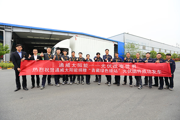 經過與“青藏綠色驛站”發(fā)起者——四川省綠色江河環(huán)境保護促進會的積極溝通、確立電站設計方案,通威立即行動起來。4月13日,本次用于捐贈“青藏綠色驛站”昆侖山、三江源、風火山三處站點的光伏組件全部準備完畢,并在通威太陽能(合肥)有限公司成功發(fā)車。通威綠色能源挺進青藏“無人區(qū)”的征程正式開始了!