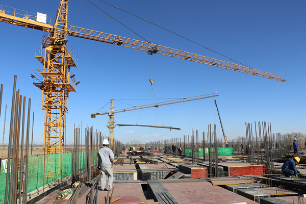 在項目現場,徐總介紹了項目建設進度:在包頭市、昆都侖區兩級政府的大力支持下,內蒙古通威高純晶硅項目建設正在有序推進,各單體建筑的主體施工全面鋪開。廠前區的建設正在朝著既定目標的時間節點加速前行,5棟宿舍樓均已按計劃施工至二層以上,預計4號宿舍樓和5號宿舍樓近日主體封頂;餐廳已經封頂,馬上進入二次結構施工階段,預計6月底投入使用;辦公樓已全面進入到主體施工階段。內蒙古通威高純晶硅在快速、安全推進工程進度時嚴格把控工程質量,打造精品工程,5棟宿舍大樓建設順利推進,廠前區的道路也在積極推進中。