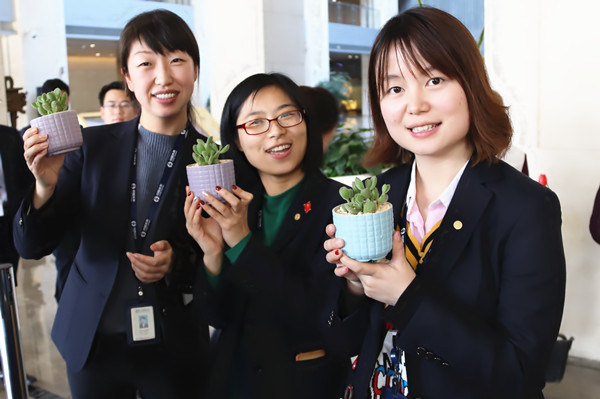 活動當(dāng)天,通威國際中心提前為入駐企業(yè)的女神們準(zhǔn)備了500盆精美可愛的多肉植物,并于中午12點(diǎn)在大廈大廳內(nèi)統(tǒng)一由客服工作人員親手送到廣大女神手中?!巴ㄍH物業(yè)服務(wù)中心祝各位‘女神’們節(jié)日快樂!”值得一提的是,與往年不同,今年通威國際中心通過前期針對廣大女性朋友喜好的了解,選擇了大多數(shù)女性朋友都喜愛的多肉植物。廣大“女神”們收到精心準(zhǔn)備的禮物和祝福后驚喜不已,紛紛感謝物業(yè)為其準(zhǔn)備的精美禮物和優(yōu)質(zhì)服務(wù),整棟大樓沉浸在歡樂溫馨的節(jié)日氣氛之中。