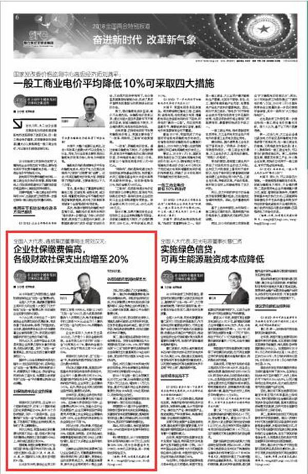 全國人大代表、通威集團董事局主席劉漢元向全國人大提交了《關于降低“五險一金”繳費比例切實減輕企業經營負擔的議案》。