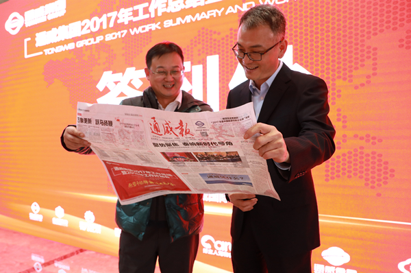 珠海海為總經理劉英杰與同事閱覽新鮮出爐的《通威報》