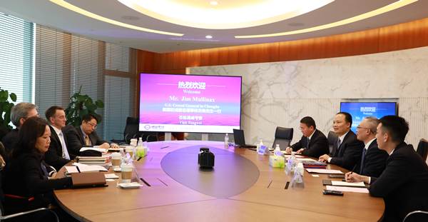 1月29日,美國駐成都總領事林杰偉一行蒞臨通威考察,十一屆全國政協常委、通威集團董事局劉漢元主席,通威集團副總裁胡榮柱、副總裁黃其剛等領導熱情接待并座談。