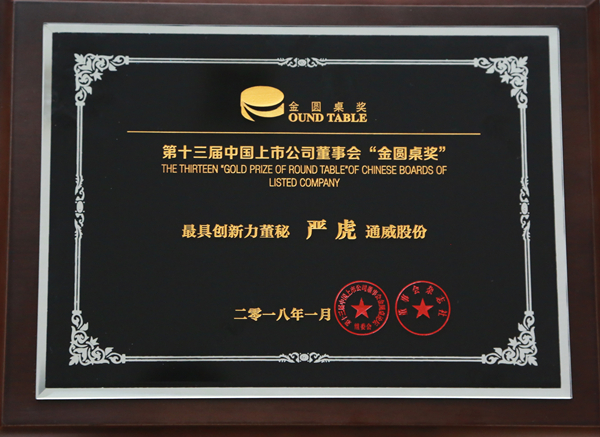 近日,由鳳凰出版?zhèn)髅郊瘓F(tuán)旗下《董事會(huì)》雜志主辦的第十三屆中國(guó)上市公司董事會(huì)“金圓桌論壇”暨“金圓桌獎(jiǎng)”頒獎(jiǎng)盛典在北京隆重舉行。來(lái)自100余家上市公司以及政府、學(xué)界、新聞界的200余位高管、專家學(xué)者出席。盛典期間,通威股份喜獲“優(yōu)秀董事會(huì)”殊榮,通威股份嚴(yán)虎副董事長(zhǎng)被授予"最具創(chuàng)新力董秘"稱號(hào)。