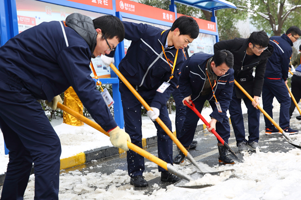 1月26日上午10時(shí),合肥公司各部門共計(jì)一百余人分散到廠區(qū)主干道、食堂通道等員工必經(jīng)道路,分頭作業(yè),責(zé)任區(qū)域,清除道路積雪,清理道路安全隱患。