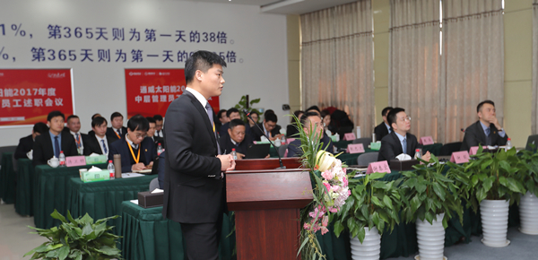 1月8日、10日,通威太陽能2017年度述職大會暨2017年度總結(jié)大會分別于成都、合肥兩地公司順利召開,通威太陽能董事長謝毅及高管團隊出席兩地會議。