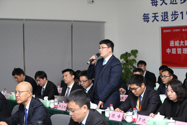 總結(jié)大會上,謝董事長帶領(lǐng)全體中高管回顧通威太陽能創(chuàng)業(yè)歷程,管理干部踴躍發(fā)言,回顧過去點滴,展望未來發(fā)展,分享行業(yè)內(nèi)成功企業(yè)經(jīng)營管理案例,對標(biāo)分析,互查互看找不足。