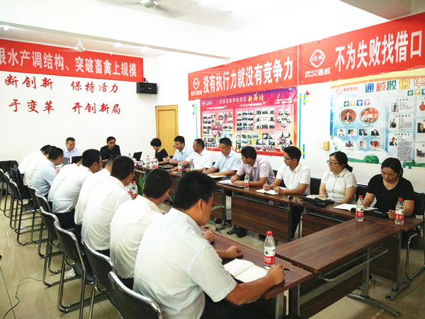 7月29日-7月30日,通威股份水產研究所2017年半年工作總結會暨技術交流會在武漢通威飼料有限公司順利召開。通威股份郭異忠總裁、通威股份副總裁兼技術總監張璐、通威股份水產研究所所長米海峰、通威研究院副院長高啟平出席會議,水產研究所全體營養師及研究員參會。
