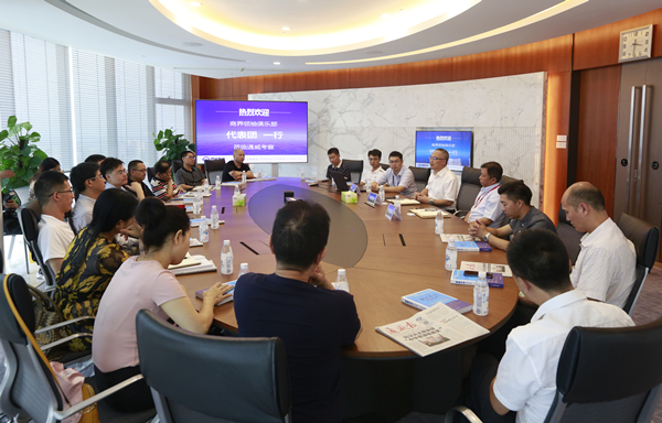 7月21日,商界領袖俱樂部代表團一行蒞臨通威考察,通威集團副總裁胡榮柱、通威股份發展部部長陳勇峰熱情接待并座談。
