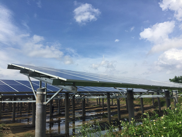 欽州康熙嶺20MW“漁光一體”光伏發電項目位于廣西壯族自治區欽州市欽南區康熙嶺鎮長坡村,項目在充分考慮當地漁蝦塘眾多的特點,有效利用當地穩定的太陽能資源,建設綠色環保的新能源。項目工程采用集中發電,就地集中并網方案,并根據各分區面積大小和結構形式,系統分成若干個大小不等的光伏并網發電單元。