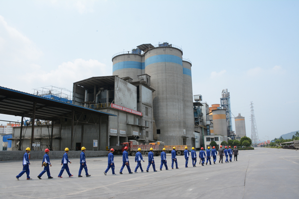 依次排隊參觀永祥水泥生產(chǎn)區(qū)