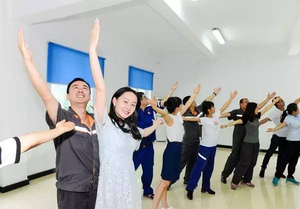 公司舞蹈隊成立之后,由于時間緊、任務重,立即展開了排練。老師首先確定站隊,將隊員依次安排好位置。第一支舞蹈是《美麗永祥走起來》,只見老師揚起雙手、踮起腳尖,隨著音樂翩翩起舞,臉上露出迷人的笑容,瞬間就進入了表演狀態。老師那婀娜的身姿,仿佛與音樂溶為一體。她那柔軟的身體,襯托出了舞者高貴的美,在場的隊員的此時陶醉了,從此似乎便愛上了舞蹈。就這樣跟隨著“一二三四、二二三四”的節拍,老師把一個個動作慢慢分解并耐心講解,隊員們也認真學習,用心記著每一個動作。