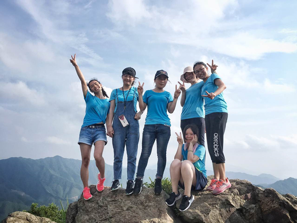 通威文化造就通威人,通威精神鑄就通威魂。一場簡單的登山礪煉行動,過程中涌現(xiàn)出了許多讓人感動的地方。因?yàn)檎翟鲁酰笄趫F(tuán)隊只有六位女同事參加。活動開始前,大家都以為女士在登山中會比較弱勢,但是她們通過自己的努力,全部登上山頂,讓團(tuán)隊大吃一驚。水產(chǎn)一部一位業(yè)務(wù)員,因?yàn)樘栠^于熾熱,再加上登山帶來的顛簸導(dǎo)致頭暈嘔吐,同行伙伴都勸他原地休息,等待下山,但是他堅持不拖團(tuán)隊后腿,在伙伴的幫助下,最終登上了山頂。