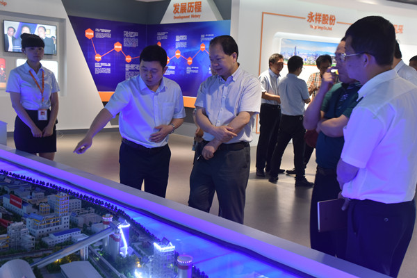 梁主任一行參觀了永祥體驗中心,了解了永祥股份的發展歷程、文化理念,聽取了段董事長關于永祥股份堅持創新變革、科技研發、安全環保、打造循環經濟產業鏈建設等方面的介紹。梁主任對永祥將進一步推進“氣代煤”生產蒸汽、實施超凈排放的舉措表示贊賞,對永祥即將上馬的5萬噸高純多晶硅及配套新能源項目表示關切,并就國家清潔能源經濟形勢、太陽能光伏發電相關政策等進行了深入交流,希望公司再接再厲,進一步做好節能降耗工作,提升核心競爭力,為地方經濟發展做出更大的貢獻。