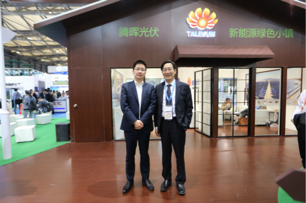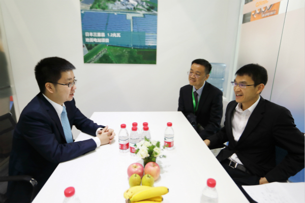 在通威展臺,謝毅董事長還與陽光電源股份有限公司董事長曹仁賢、江蘇環(huán)太集團董事長王祿寶、廣州市儒興科技股份有限公司總裁許珊等多位蒞臨嘉賓進行了交流座談。