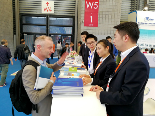 參會外賓在展臺前與永祥股份工作人員交流
