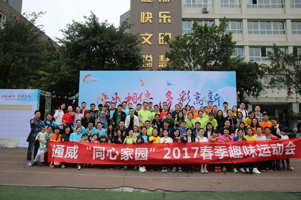 4月8日,由成都高新區桂溪街道黨工委、辦事處主辦,通威國際中心“同心家園”協辦的“快樂相伴 多彩高新”趣味運動會在成都高新區世紀城南路學校運動場圓滿舉行。通威國際中心“同心家園”作為協辦單位之一,共派出了通威集團、通威股份、好主人寵物食品、漁光物聯、威爾檢測、富房不動產、鈺通公司、唯贏信息等12支隊伍參賽,參賽人員及家屬逾計200人。通威集團工會主席李思宇、通威股份財務總監袁仕華代表公司高管全程參賽。
