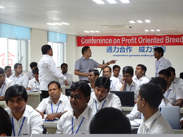 座談會上,孟加拉通威各部門管理人員首先總結了2016年工作,重點匯報了2017年工作規劃及開展思路。在聽取匯報并對水產和禽料市場實地考察后,洪總首先分享了海陽通威和和平通威的轉型經驗,并與公司管理人員共同分析了孟加拉通威目前所遇到的困難,對問題一一提出了可行的解決方案,同時洪總表示,經營班子必須要解放思想,轉變觀念,敢打敢拼。