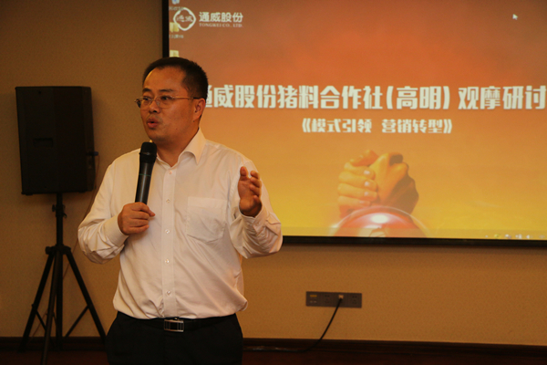 圍繞“合作社”、“豬場直銷”通威豬料發(fā)展的兩大核心戰(zhàn)略,3月22-24日,在通威股份市場營銷部的精心策劃組織下,“通威股份豬料合作社(高明)觀摩研討會”在佛山成功舉行,標志著通威股份豬料合作社模式引領行業(yè)跑步進入合作社時代。通威股份郭異忠總裁、通威股份總裁助理兼華北戰(zhàn)區(qū)總裁周澎、通威股份華南一區(qū)總裁鄧金雁、通威大學執(zhí)行副校長張紅纓出席,通威股份市場營銷部以及20余家豬料銷售分、子公司派出的精銳力量參會。