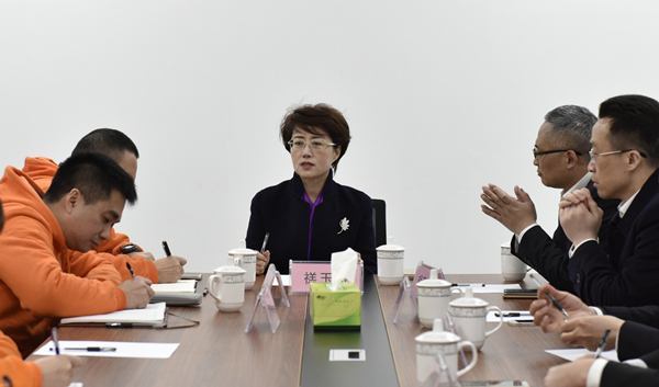 祝董向禚玉嬌總裁一行領(lǐng)導(dǎo)介紹新廠區(qū)情況