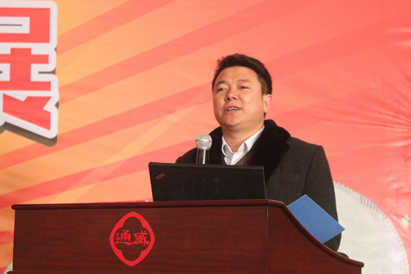 最后,通威股份總裁助理兼華北戰區總裁周澎致辭,周總表示,人才精英化、團隊精銳化,是公司發展的必經之路。希望天津通威在楊總的帶領下,在全體干部、員工的共同努力下,堅守信念、堅持不懈、精益求精,以只爭朝夕的精神工作,齊心協力共同實現2017年既定目標,從而走在行業前列,引領行業風范。