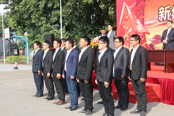 團隊接受現(xiàn)場授旗,表達(dá)堅定決心