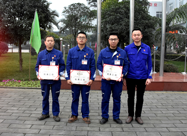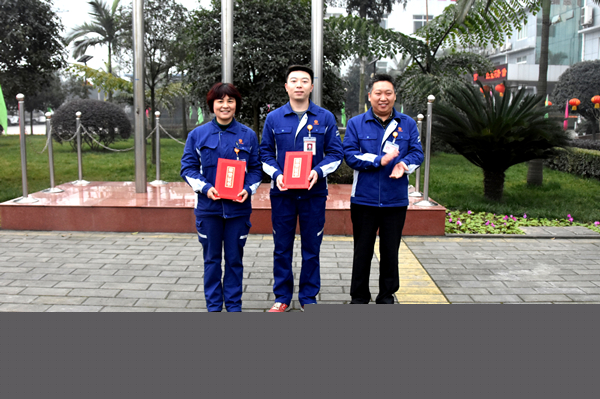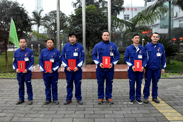 8點(diǎn)整,三名旗手邁著矯健的步伐走向旗臺(tái),五星紅旗及通威、永祥旗在莊嚴(yán)雄壯的國(guó)歌聲中冉冉升起,隨風(fēng)飄揚(yáng)。隨后,永祥多晶硅人事行政部經(jīng)理傅蘇宣讀了《2016年度優(yōu)秀團(tuán)隊(duì)及優(yōu)秀員工的通知》和《2016年度安全環(huán)保先進(jìn)評(píng)選結(jié)果的通報(bào)》,甘總等公司領(lǐng)導(dǎo)現(xiàn)場(chǎng)為優(yōu)秀團(tuán)隊(duì)及個(gè)人頒獎(jiǎng)。