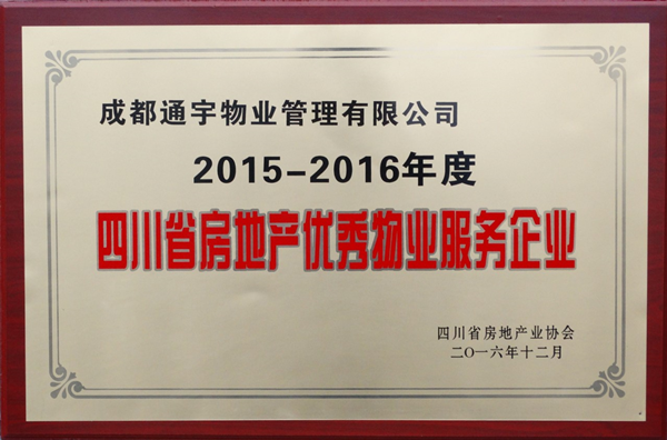 據(jù)悉,2016年10月,四川省房地產(chǎn)業(yè)協(xié)會(huì)下發(fā)了《關(guān)于開展2015-2016年度四川省房地產(chǎn)優(yōu)秀企業(yè)評(píng)選活動(dòng)的通知》,通宇物業(yè)積極參評(píng),經(jīng)企業(yè)評(píng)選委員會(huì)初審、專家復(fù)審、四川省相關(guān)領(lǐng)導(dǎo)審定等環(huán)節(jié),公司憑借規(guī)范的內(nèi)部管理體系,踐行“鐫刻細(xì)節(jié) 臻于至善”的服務(wù)理念,優(yōu)秀的超甲級(jí)寫字樓、高端住宅、標(biāo)桿工業(yè)園區(qū)管理業(yè)績(jī)及開創(chuàng)先河舉辦行業(yè)最高規(guī)格的大型物業(yè)管理高峰論壇獲得廣泛贊譽(yù),并榮獲“年度優(yōu)秀物業(yè)服務(wù)企業(yè)”殊榮。