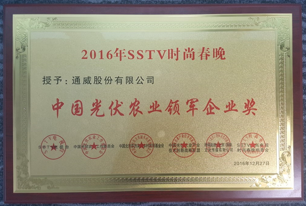 為推動光伏農業(yè)產業(yè)技術創(chuàng)新發(fā)展,促進我國光伏農業(yè)產業(yè)整體提質增效,助力光伏農業(yè)產業(yè)與全國各企業(yè)跨界融合,12月27日,中國光伏農業(yè)產業(yè)聯(lián)盟聯(lián)合中央電視臺共同舉辦的“光伏農業(yè)年度頒獎盛典”在中華世紀壇隆重舉行。盛典期間,通威股份榮獲“中國光伏農業(yè)領軍企業(yè)獎”。