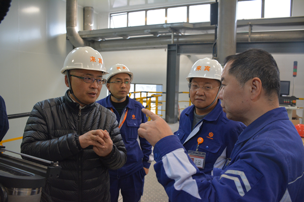 胡總與李總、付總在車間深入交流