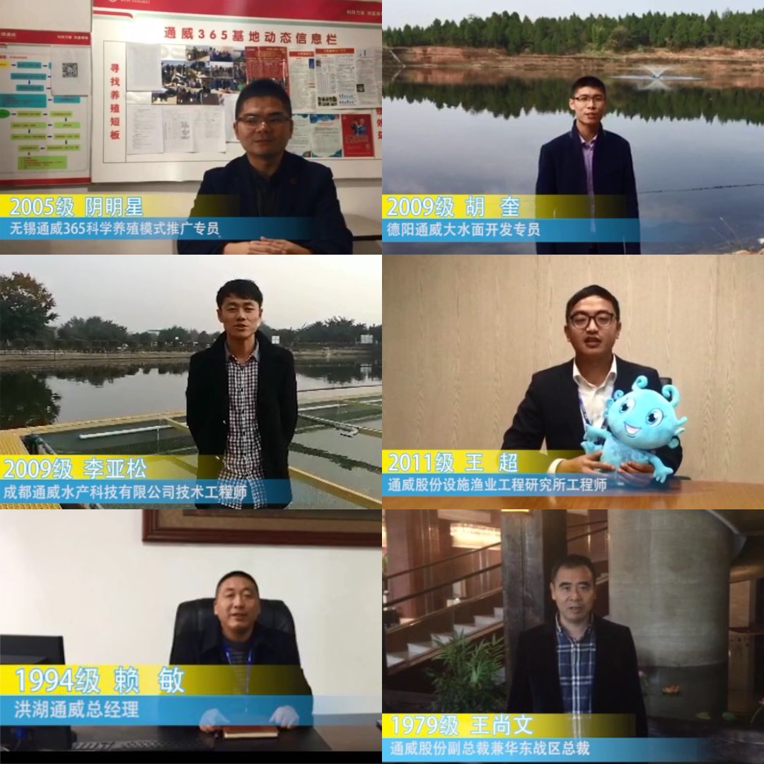 得知要在四川省水產(chǎn)學(xué)校舉行頒獎典禮,眾多校友紛紛“穿越”萬里,從全國各地傳來視頻表達對老師、同學(xué)們的真摯祝福。其中,通威股份副總裁兼華東戰(zhàn)區(qū)總裁王尚文、洪湖通威總經(jīng)理賴敏驚喜“現(xiàn)身”引發(fā)全場歡呼。