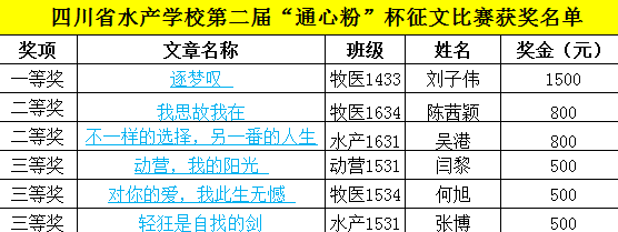 “至水校,皆為習(xí)牧者、漁者之屬。初時,余巡水校一遭,覺水校鳥語絮絮、草卉凈植、錦鱗淺池,可覺神爽氣清?!?014級畜牧專業(yè)的劉子偉同學(xué)憑借這篇文言文體《逐夢嘆》斬獲征文比賽一等獎桂冠,獲得1500元現(xiàn)金大獎。劉子偉是大三學(xué)生,已經(jīng)到了實習(xí)時間,特意為此次活動留在了學(xué)校。領(lǐng)獎時,他幽默風(fēng)趣,在現(xiàn)場與同學(xué)們互動問答,拋出“能力和努力哪個更重要?”“如何通過創(chuàng)新出彩?”等話題,贏得陣陣掌聲,并鼓勵同學(xué)們在校多努力、多嘗試,夢想就一定有實現(xiàn)的可能。