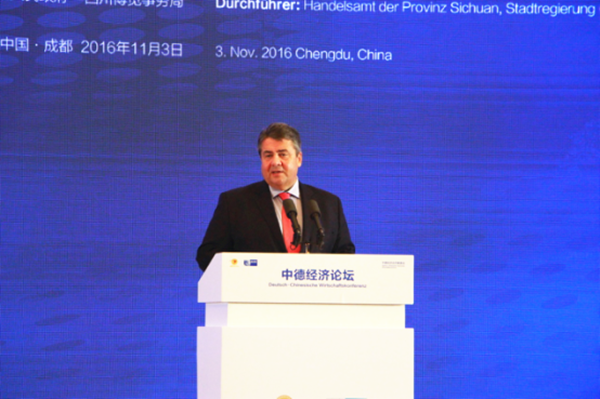 11月3日上午,作為第十六屆西博會的重大活動之一,中德經濟論壇于成都世紀城國際會議中心隆重舉行。四川省省長尹力主持開幕式,中國國務委員王勇,德國副總理兼聯邦經濟和能源部部長加布里爾,四川省委書記王東明,德國聯邦經濟和能源部國務秘書馬赫尼希,商務部副部長錢克明,國家發展改革委副主任張勇,貴州省省長孫志剛、副省長盧雍正,成都市委書記唐良智,十一屆全國政協常委、通威集團董事局劉漢元主席出席論壇并作為川企代表對話德企,中德兩國商界代表、媒體記者共300余人出席論壇。