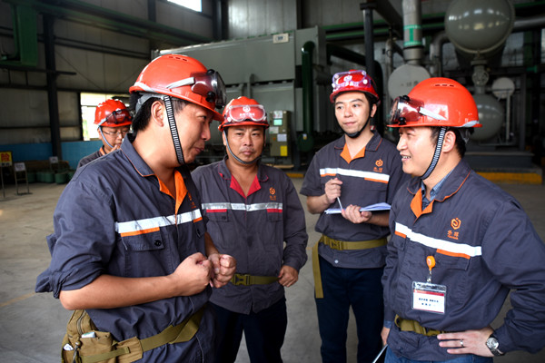 “你就把我們當作新員工,你平時是怎么操作的照常做就好。”為消除相關崗位的員工緊張心理,段董事長對二級巡檢崗位員工說,“我們今天的目的是檢驗標準跟實際操作情況對不對,有沒有不合理的、需要修正和完善的地方,不是對大家提出批評。”段董事長一手拿著該工段相關崗位紙質的操作標準(修訂版),一邊觀察著員工的操作,并聆聽員工的講解。每到一處,段董事長便對照標準詢問員工某個閥門、儀表在什么地方,怎么巡檢等等,并與相關技術、管理人員討論標準合理性,對明顯存在的缺陷和不合理的地方,現場安排落實解決措施。