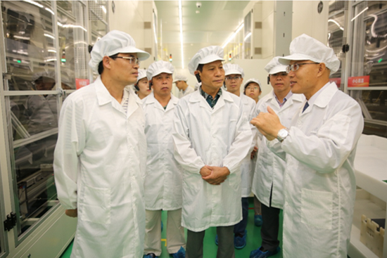 參觀中,溫處長對通威太陽能(成都)有限公司生產車間的高度自動化、高潔凈度表示高度贊賞。