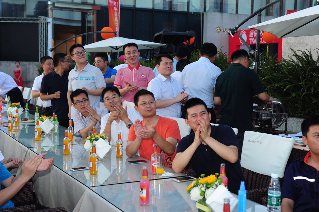 會議結束后,大家換上便裝,懷著輕松愉悅的心情,來到東湖公園參加“湖·光盛宴”2016上半年精英晚宴。川劇變臉、歐美樂團表演、鋼琴演奏……現場一個個精心準備的節目讓大家直呼過癮。“五、四……一”隨著現場高喊倒計時,湖面上水幕電影播放起通威太陽能(合肥、成都)公司發展歷程,大家紛紛掏出手機,留存下自己與公司共同成長的記憶。