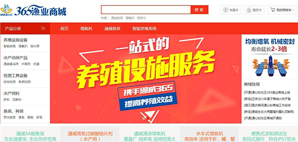 據(jù)悉,“365漁業(yè)商城”以“推廣先進養(yǎng)殖模式、聚合水產(chǎn)養(yǎng)殖物資、搭建新型電商平臺、提升現(xiàn)代漁業(yè)服務”為發(fā)展目標,旨在利用信息化、移動互聯(lián)方式,改變過去的傳統(tǒng)購銷模式,力爭打造中國漁業(yè)第一電商平臺。在“365漁業(yè)商城”里,養(yǎng)殖設(shè)施設(shè)備、水廠動保產(chǎn)品、檢測工具設(shè)備、水產(chǎn)飼料、魚苗種苗等漁需物質(zhì)應有盡有。