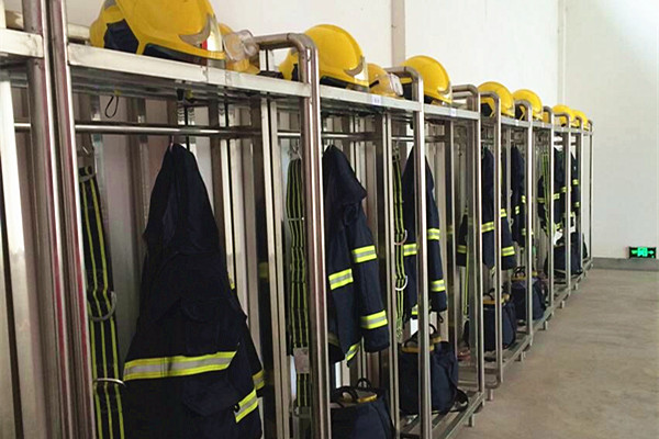 頂著炎炎夏日,永祥消防站的隊員們精神抖擻地進行著防護用具使用訓練。消防隊員廖聯東向段董事長匯報了火災報警系統以及有毒有害報警系統運行使用情況。