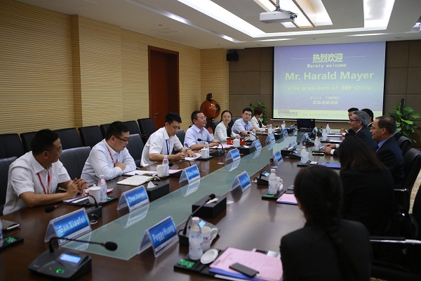 5月26日,寶馬中國大客戶和機構銷售副總裁馬涵德先生(Mr. Mayer)、國際直銷和特種車輛銷售高級經理蓋渡福先生(Mr. Geissler)、酒店和航空行業(yè)經理井英杰、西區(qū)大客戶銷售經理施諾、四川中達成寶汽車銷售有限公司大客戶經理張闊一行到訪通威集團總部,通威集團副總裁黃其剛、集團工會主席李思宇、股份信息總監(jiān)周勇等高管熱情接待并座談。
