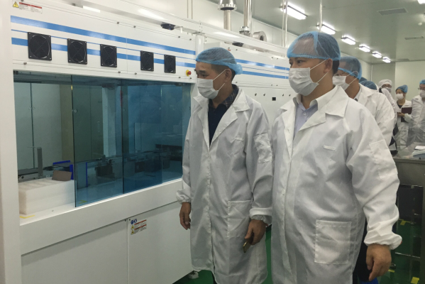 下午三時許,與會貴賓抵達合肥公司,首先進入了P5高效晶硅電池生產車間參觀。講解員詳細介紹了P5車間現有生產線配備情況、設備自動化程度以及年產計劃,使與會貴賓對太陽能常規電池片制作的六大生產工序有了細致、全面的了解。參觀過程中,貴賓們對太陽能發電效能、優勢等方面表現出濃厚興趣,并現場與劉主席進行了交流,在解說員的介紹下,貴賓們也深入地了解了光伏行業最先進的高效太陽能電池片PERC技術,以及此技術的工藝原理及目前合肥公司在此技術的運用情況。