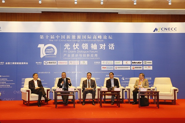 在由全聯(lián)新能源商會專業(yè)副會長兼秘書長曾少軍主持的“領(lǐng)袖論劍”環(huán)節(jié),來自通威集團、順風光電、天合光能、漢能控股、晉能集團等企業(yè)的領(lǐng)導展開圓桌對話,共同碰撞智慧。圍繞對話主題“產(chǎn)業(yè)進步與創(chuàng)新應用”,副總裁胡榮柱介紹,作為全球唯一一家以“農(nóng)牧+新能源”為雙主業(yè),并在兩大主業(yè)都擁有全產(chǎn)業(yè)鏈的大型企業(yè)集團,通威無疑在水產(chǎn)技術(shù)、光伏技術(shù)的創(chuàng)新應用方面進行了大量的探索,通威獨有的“漁光一體”模式,正是對于各種技術(shù)進行整合創(chuàng)新的成果。針對“產(chǎn)業(yè)進步”話題,胡總指出,過去多年以來,光伏在中國的發(fā)展經(jīng)歷了一定的起伏,我們認為這個產(chǎn)業(yè)的進步更多要靠行業(yè)參與者的理性,通過大家的共同努力,保持產(chǎn)業(yè)供需的基本平衡。胡總強調(diào),光伏企業(yè)應當具備充分的風險與憂患意識,通過每個環(huán)節(jié)上的創(chuàng)新,把自己的事情做好,同時也要營造起良好的產(chǎn)業(yè)生態(tài),這樣我們才能在“做大”的同時不斷“做強”。