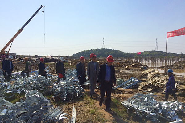 近日,通威集團副總裁胡榮柱對南昌黃馬“漁光一體”項目工地進行實地查看,通威新能源有限公司總經理姜天齊等相關負責人陪同。
