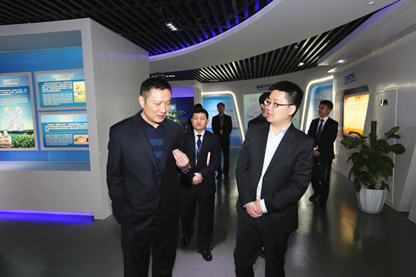 在參觀通威體驗中心過程中,謝董向王董詳細介紹了通威30多年來的發展歷程,并著重介紹了農業、新能源雙主業的最新發展情況和取得的相關成就。王董對通威各板塊的自動化改造與建設,板塊間協作互贏的模式表示了濃厚的興趣,并一一詢問了通威智能化養殖、“漁光一體”模式等的建設推廣情況。在對通威深入了解之后,王董對通威集團“誠信正一”的經營理念、雙主業齊頭并進的發展觀以及強烈的社會責任感表示了高度贊賞與肯定。